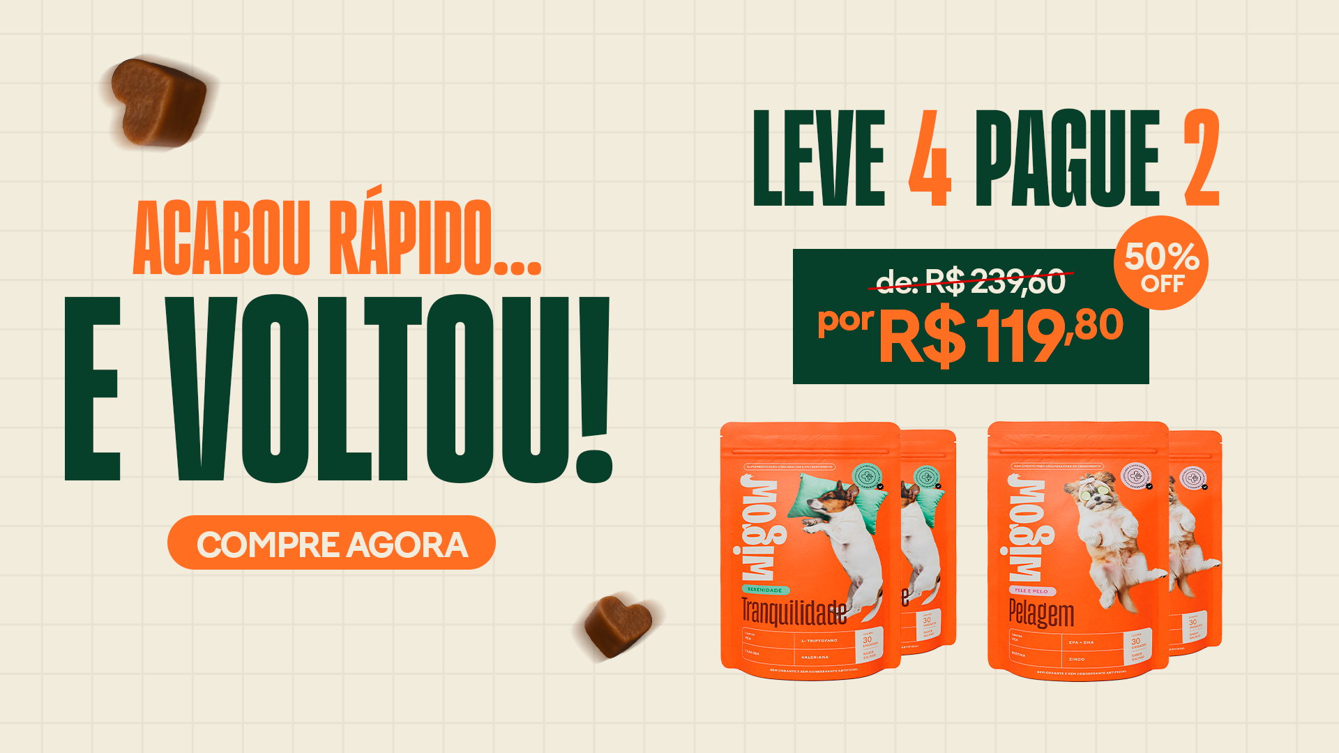 Se o seu pet é saudável, pode usar os suplementos Wigow seguindo a recomendação da embalagem. Mas se ele tiver alguma condição de saúde ou tomar outros medicamentos, o ideal é consultar seu veterinário antes de iniciar com os suplementos.
