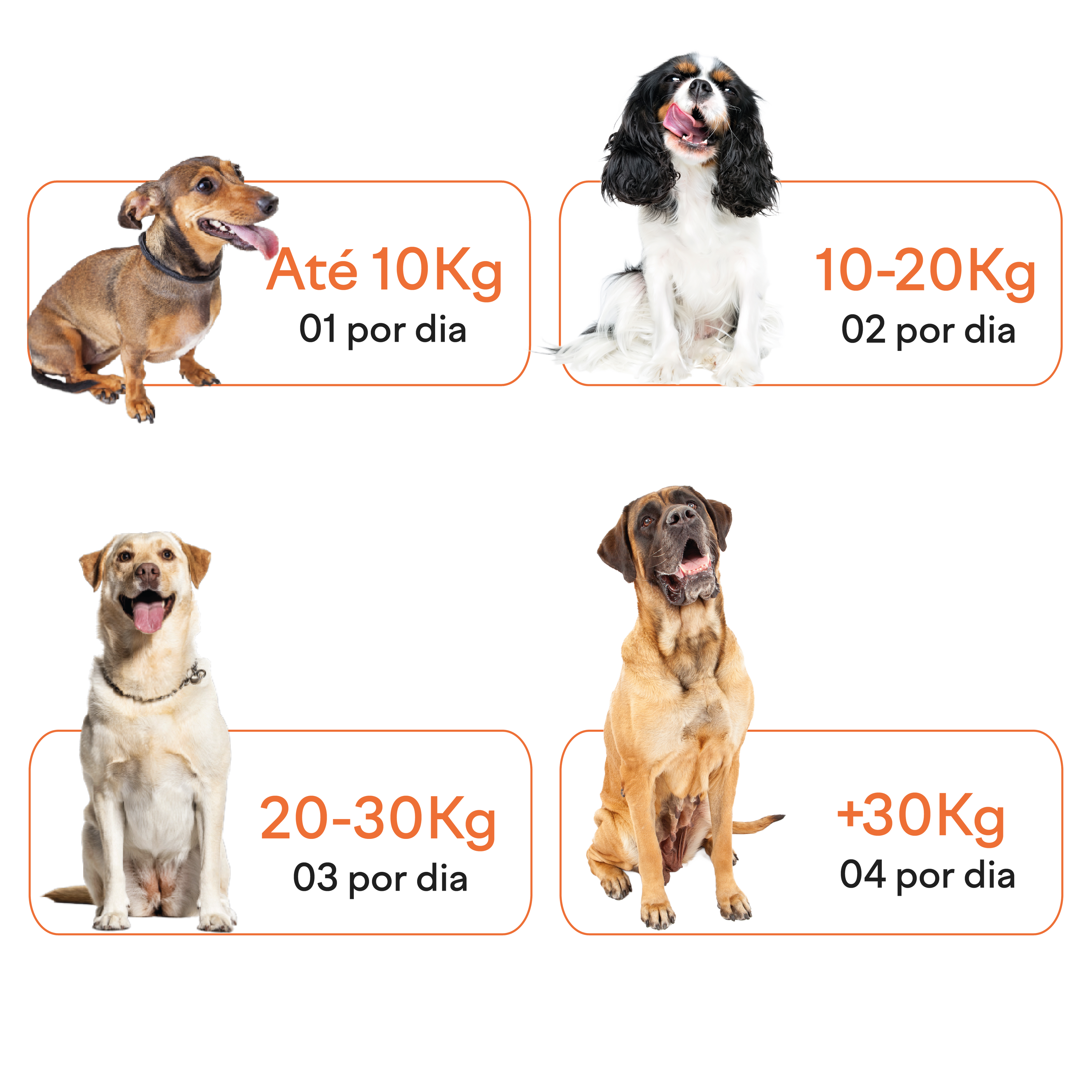 Os efeitos do suplemento podem variar de acordo com o porte, idade, raça, metabolismo e características individuais de cada cão. Por isso, é sempre