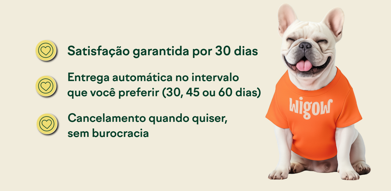 Receba o suplemento ideal para o seu filho de quatro patas todos os meses, sem preocupações, sem imprevistos e com total flexibilidade.